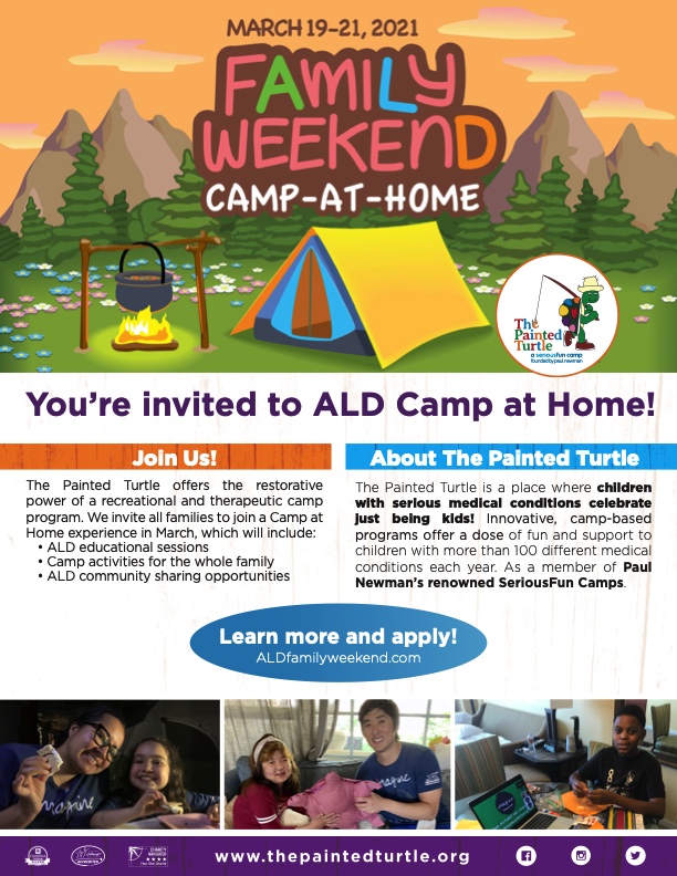 I had trouble falling asleep Sunday night. Ever had a big day that you just didn’t want to end? We had a whole weekend of fun and my mind was spinning with entertaining memories and picturing the giant smile on Jack’s face. This weekend was The Camp at Home — ALD Family Weekend thanks to The Painter Turtle, the wonderful Adler family, Dr. Van Haren and all the other ALD heroes/folks that made it happen. Watching the computer screen all weekend and getting to see some of our favorite ALD families was great, but for me it was seeing all the new families that really got to me.
