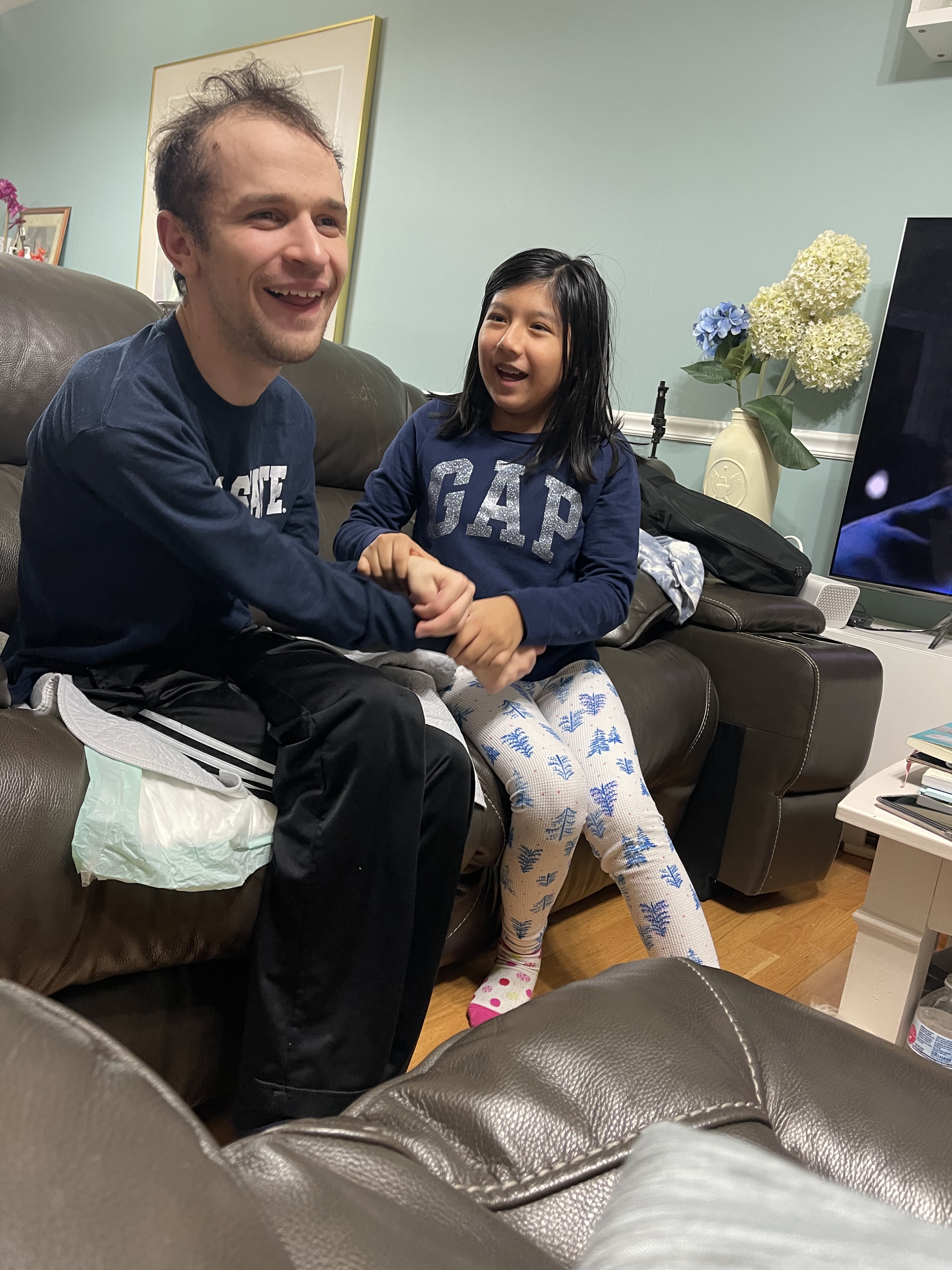It’s now been over a year since Jack had a formal schedule. 411 days since he would hop on a bus and have a day full of adventures and instruction with peers and therapists and teachers. It’s been an adjustment for the rest of us, but Jack never seemed frustrated by the new COVID reality. The first few months he just loved having his whole family around all day. And then he enjoyed every show we introduced him to – The Office, Cheers, Seinfeld, Full House, The Wonder Years, That 70s Show. But by the time I started school Jack was running out of television, Anna had returned to Baltimore and the house felt rather boring with Dan working and me buried in my studies. Maria saw a need and she filled it.