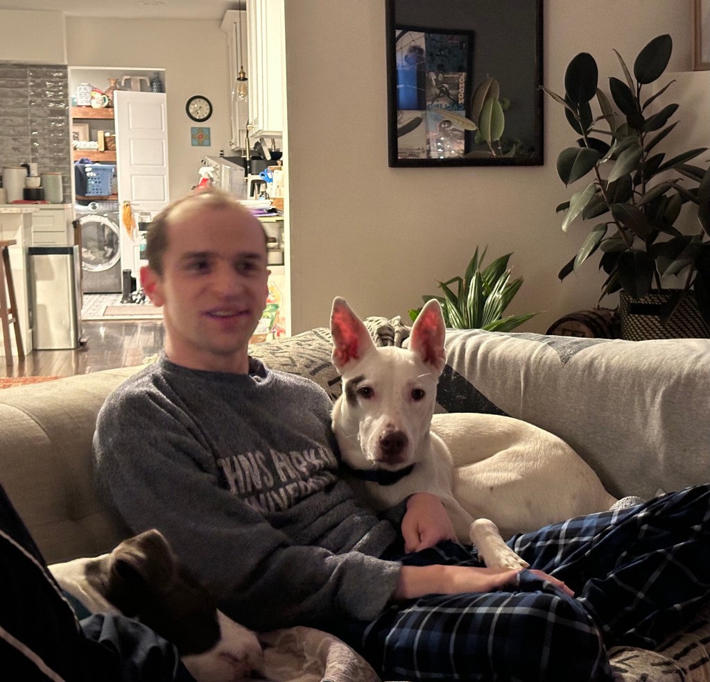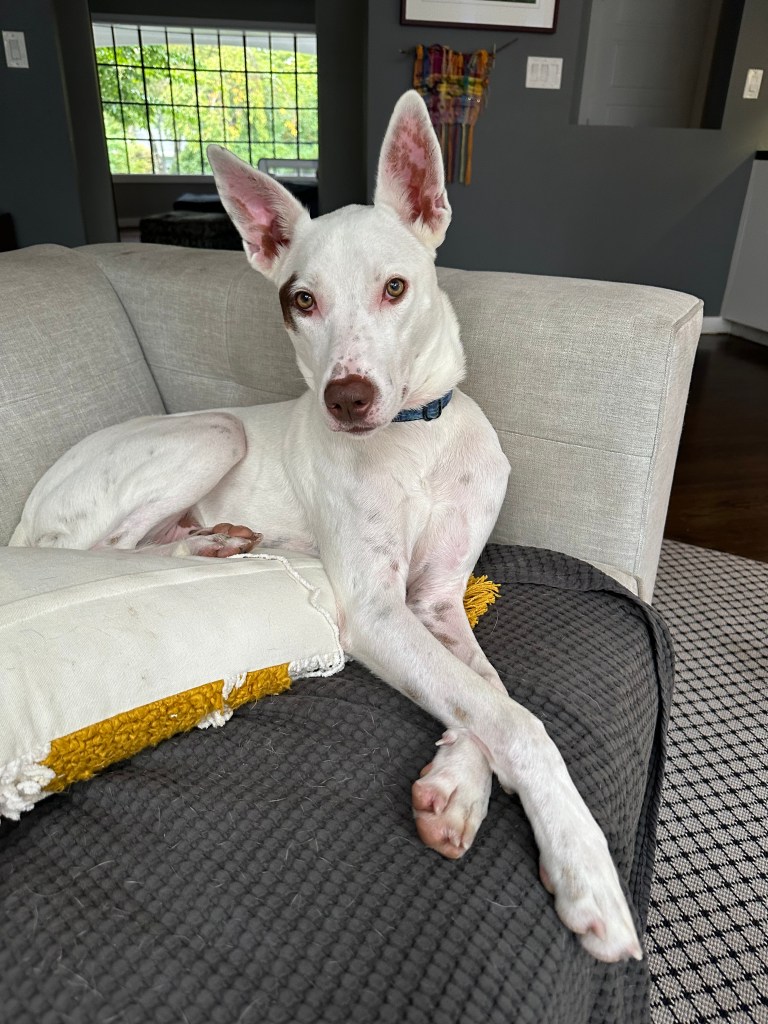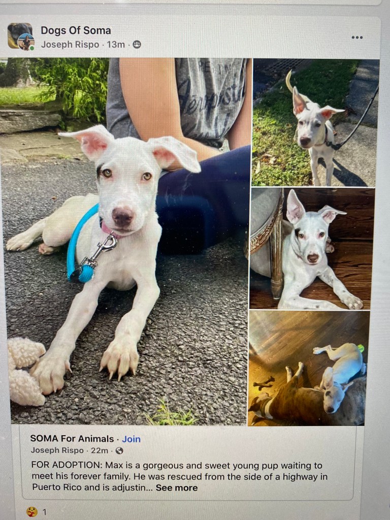 It did take Max a while to adjust to family life. He had been found on the streets of Puerto Rico, and it appeared that he had lived on the streets for his entire life. When we first brought him home, he would eat anything — he was so worried about when his next meal would come. His favorite snacks were socks, paper towels and an occasional pair of underwear. It was months before he realized that his food bowl would be filled twice a day.