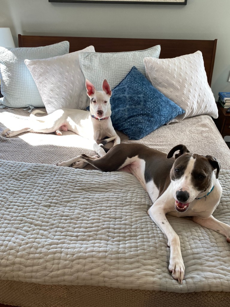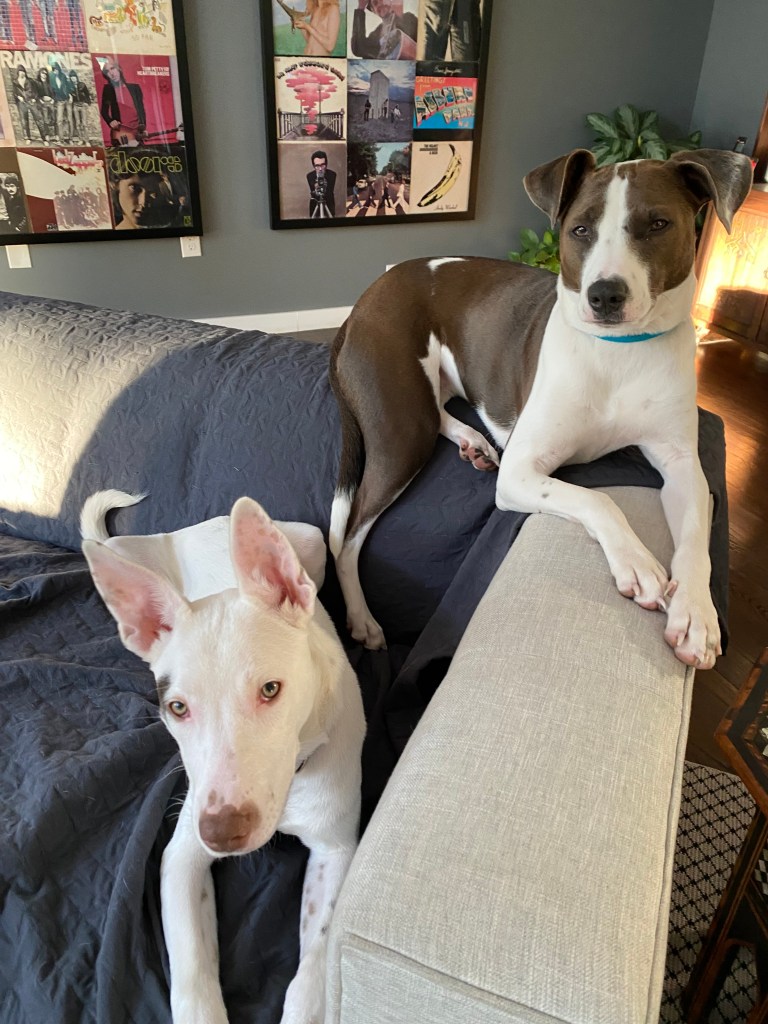 Over time, Max relaxed and settled into our family. He loved playing and snuggling with Tupelo. He would limit his ferocious bark to one or two to greet our guests. He learned that he couldn’t sit on us as we tried to drive, but if he gave us one of his sweet smiles, he and Tupelo could take over any piece of furniture in the house. And, like all creatures, Max quickly fell in love with Jack. As crazy as Max could get, he never put our boy in danger. His favorite spot was on the couch next to Jack or getting a head scratch from Anna.